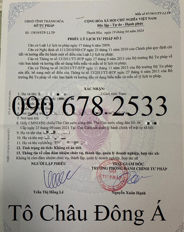 ⭐Hiện nay đơn vị uy tín nhất làm Phiếu lý lịch tư pháp là Tô Châu Đông Á Group.